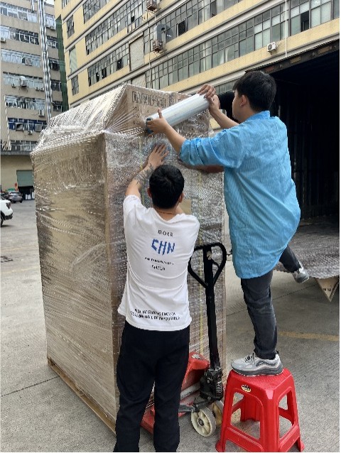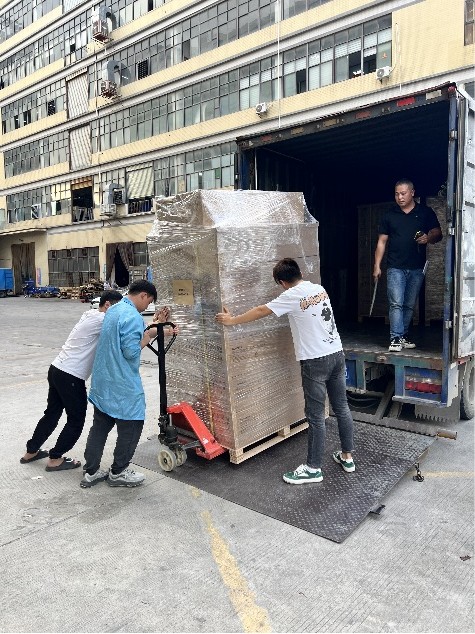 आमचे कर्मचारी वस्तू पॅक करीत आहेत आणि त्यांना ट्रकमध्ये हलवत आहेत.