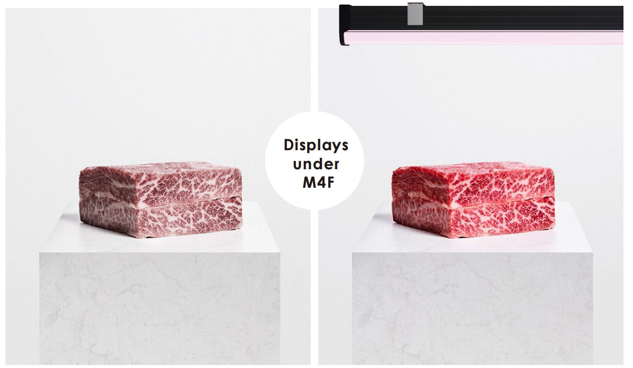 M4 अल्ट्रा-स्लिम स्ट्रिप लाईटवर आधारित,फॅन्क्सस्टारविशेषत: सुपरमार्केटमधील मांस विभागासाठी स्पेक्ट्रम 4000K+6500K+Red 660nm करण्यासाठी प्रकाश स्रोतामध्ये समायोजन केले आहे. या मीट लाइट स्पेक्ट्रमच्या प्रकाशाखाली, आम्ही सुपरमार्केटमध्ये विकतो ते मांस रसाळ आणि ताजे दिसू शकते, ज्यामुळे मांसाची विक्री वाढते.