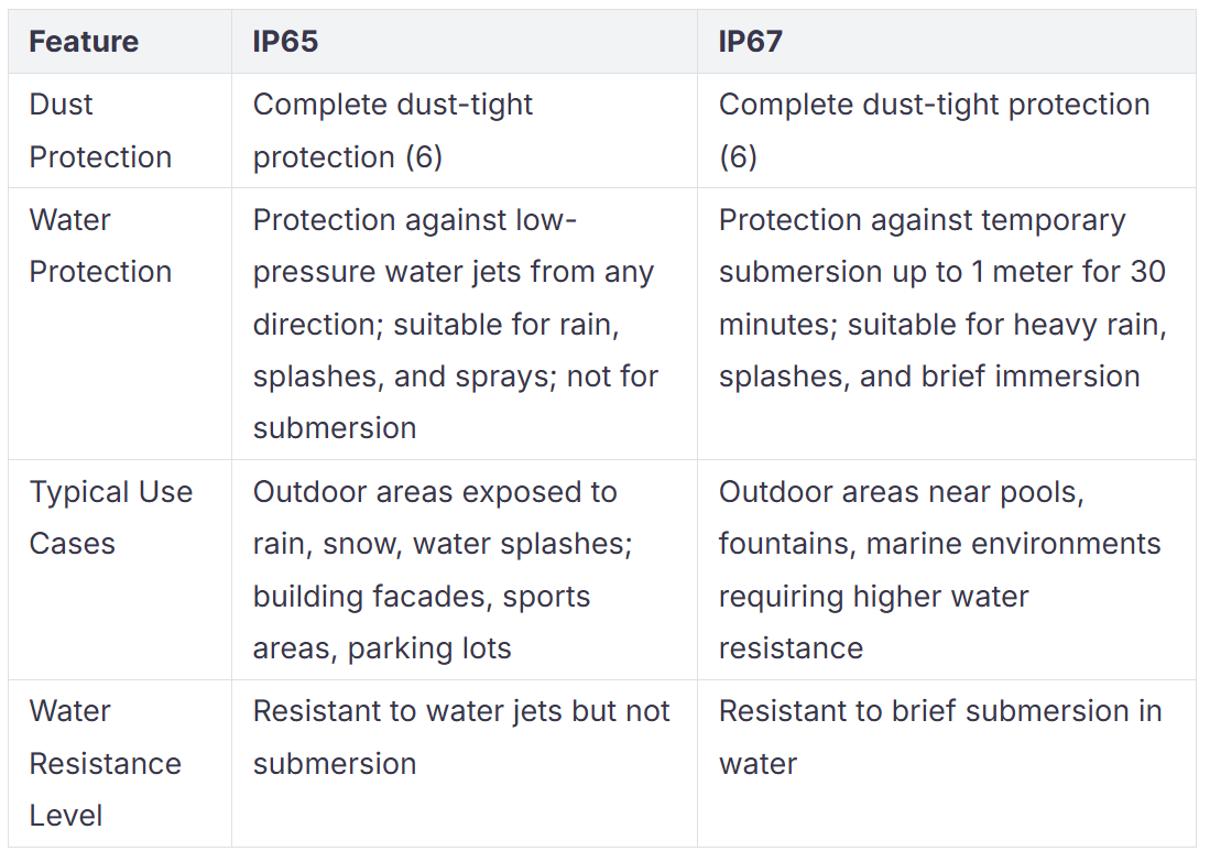 तुम्ही एलईडी आउटडोअर लाइटिंग लावण्यापूर्वी नेहमी ip रेटिंग तपासा. हे तुमचे जलरोधक दिवे खराब हवामानात टिकण्यास मदत करते आणि तुमची जागा सुरक्षित ठेवते.