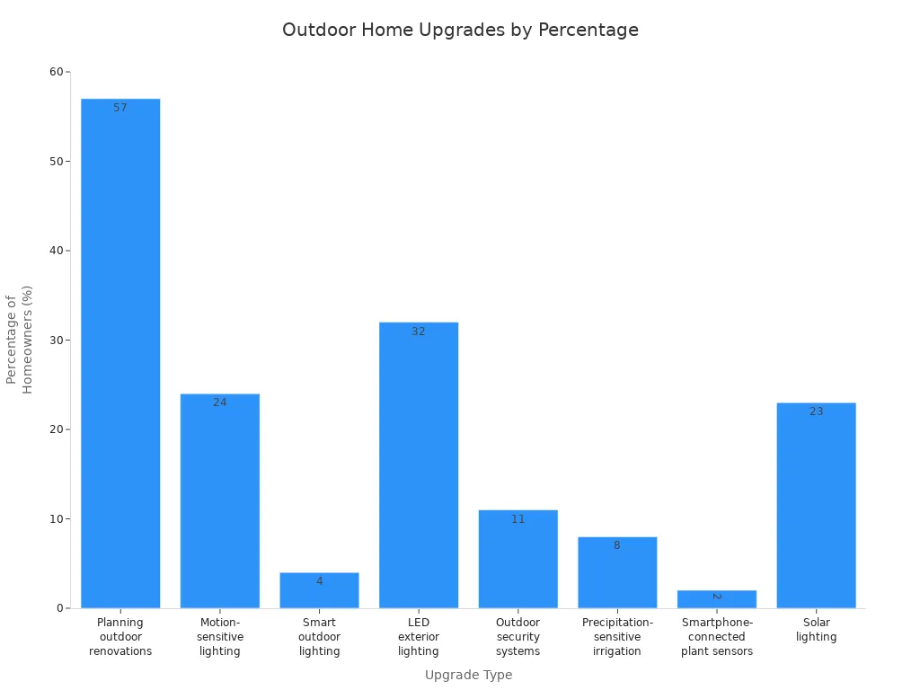 टीप: योग्य फिक्स्चर तुमचे अंगण उजळून टाकण्यापेक्षा अधिक कार्य करते. यामुळे तुमची जागा अधिक चांगली दिसते आणि शैली जोडते.